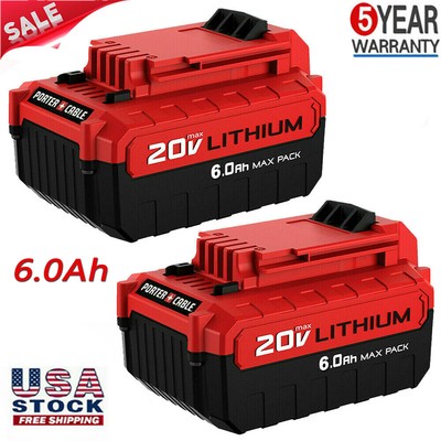 2 pack 6000mah 20v max lithium replacement battery for porter cable 20v lithium battery pcc685l pcc680l 20 volts batteries.