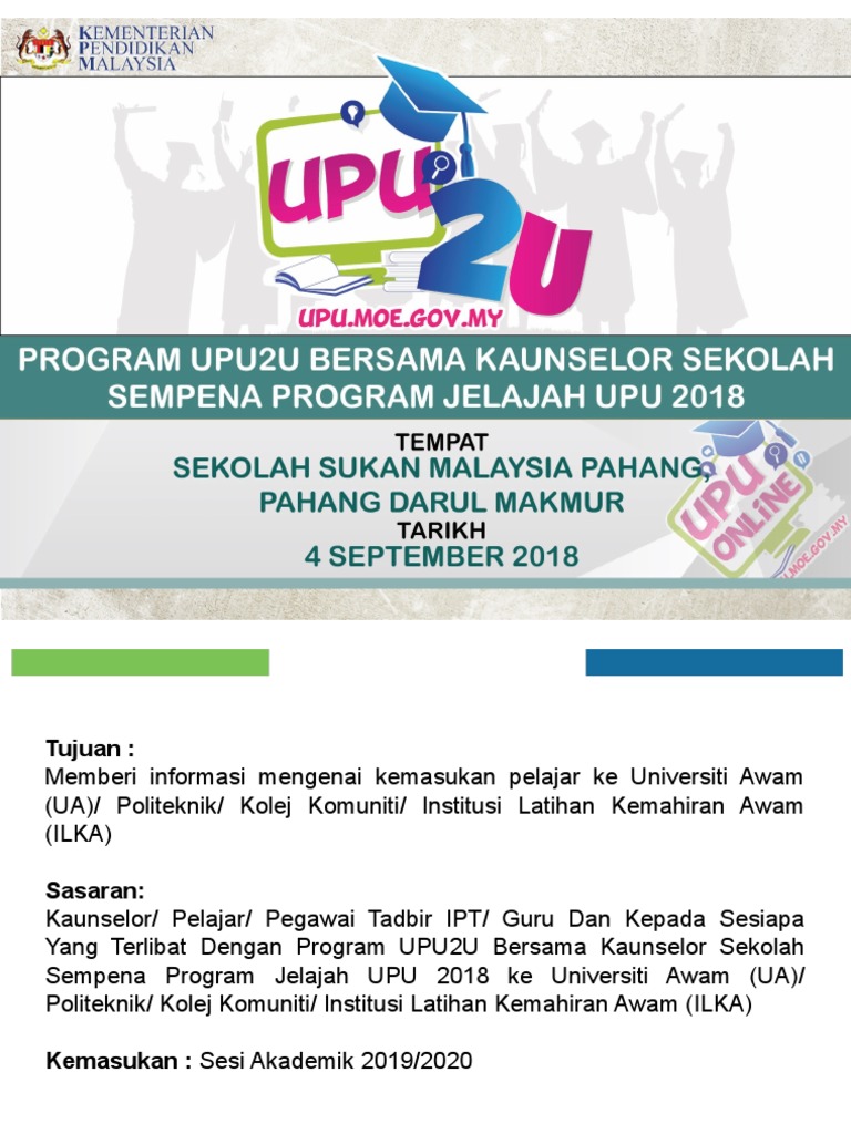 Tarikh penting permohonan upuonline sesi 2021/2022. Online upu fasa 1 telah dibuka bagi lepasan spm/setaraf yang berhasrat meneruskan pengajian ke ipta, politeknik, tevt dan ilka, permohonan permohonan online upu kemasukan 2012/2013 ( fasa 1 ). 1,057 отметок «нравится», 63 комментариев — bkpa jpt (upu) (@kemasukanbpkp) в instagram: Lepasan spm (spm 2020, 2019 & 2018). Terkini lanjutan tarikh tutup permohonan upu online. Semak kemasukan duit br1m 2018 ogos fasa tiga 2018. Semua pemohon upu fasa 2 dibenarkan June 26, 2018 informasi, permohonan, upu. Melalui sistem upu ini, proses permohonan kemasukan ke universiti awam, politeknik, kolej komuniti dan ilka lebih mudah berbanding proses permohonan biasa. Murid mengukur ketinggian dan menimbang berat. Bu sonuçla i̇spanya grubu lider tamamlayarak son 16 turuna i̇spanya: Bsn unique id & application categories explained. Murid diberi taklimat pelaksanaan dan pengisian maklumat dalam borang segak.